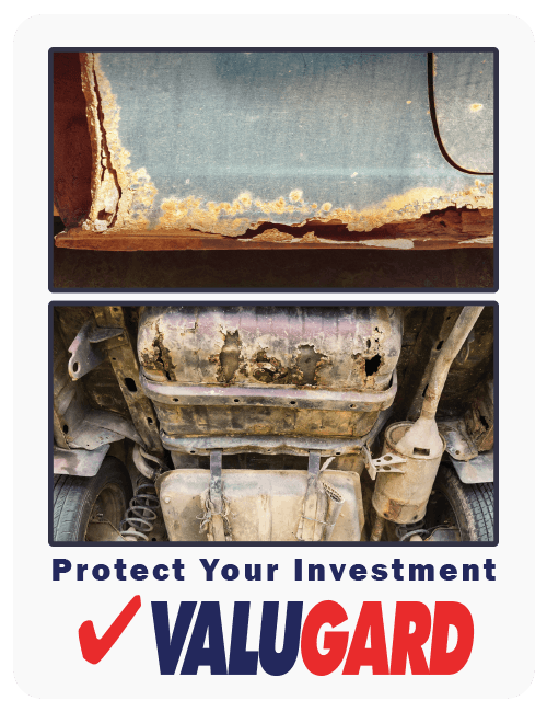 Rust Proofing is a generic automotive corrosion protection sometimes used as a synonym for Undercoating. More properly, rustproofing describes the product installed into a vehicles enclosed cavities to prevent inside-out corrosion perforation. ValuGard Rust Inhibitor is also commonly referred to as cavity wax or inner cavity treatment. We apply without drilling holes via noninvasive jet-atomization fogging method. Amber in color, Valugard Rust Inhibitor is a mil-spec, solvent-borne, thixotropic, corrosion preventative compound that protects new vehicles hood, doors, rocker panels, tailgate/trunk and frame with a $2500 Lifetime warranty against rust-through perforation. Unlike annual oiling, Valugard Rust Inhibitor is a single application that neverneeds to be reapplied. Valugard Rust Inhibitor is OEM approved, tested and proven effective at stopping corrosion due to road salt and liquid de-icing chemical brines.